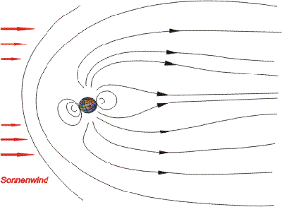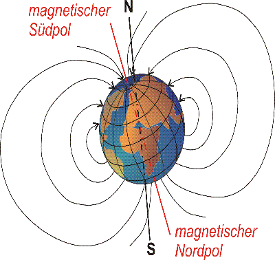 Das Erdmagnetfeld ist das Magnetfeld, welches die Erde umgibt. Das Erdmagnetfeld ist größtenteils statisch, also unbeweglich. Es ist bezüglich der Erdoberfläche zur Zeit in geographischer Nord-Süd-Richtung gerichtet, weshalb eine Kompassnadel auf der Erde ungefähr nach Norden zeigt. Das statische (ruhende, unbewegliche) Magnetfeld der Erde entsteht aus bewegten elektrischen Ladungen im Erdinneren. Dabei fließen gigantische elektrische Ströme im tiefen und flüssigen Eisenkern der Erde.